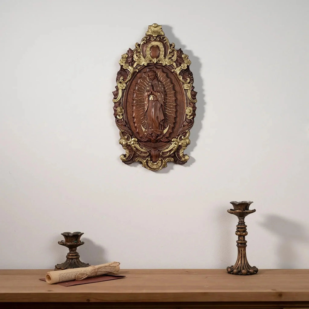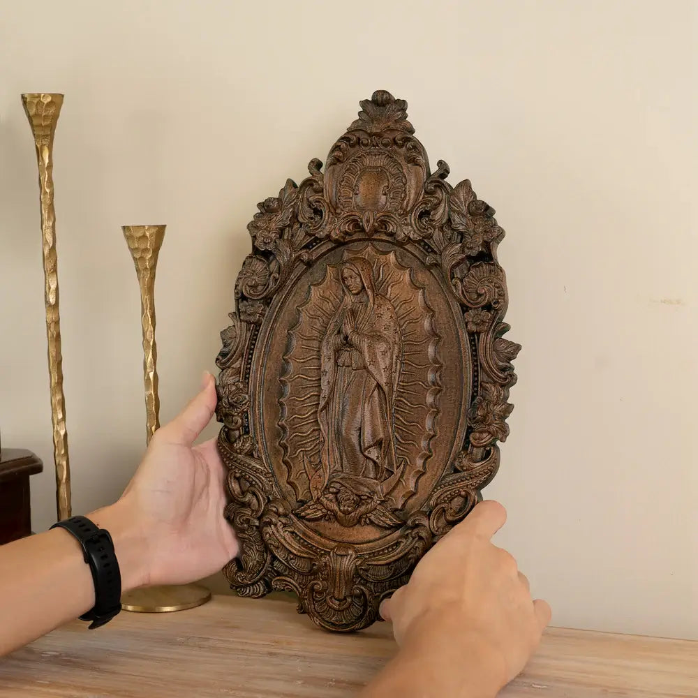 A escultura em madeira de Nossa Senhora de Guadalupe agora lembra as pessoas do amor e das orações de Maria por você e suas pessoas queridas.