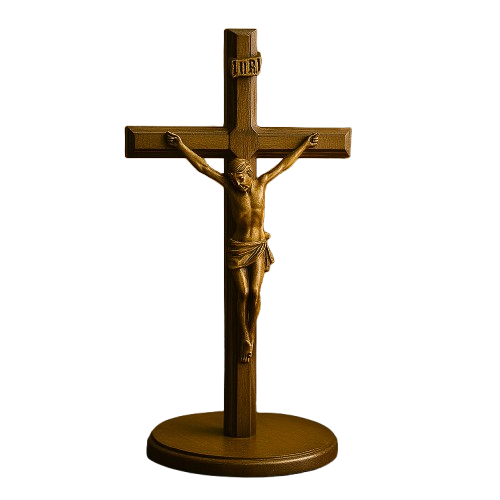 ✝️ Crucifixo Clássico de Mesa – 20 cm. madeira com Cristo em bronze envelhecido. transmite paz e fé.