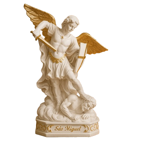 🕊️ Imagem de São Miguel Arcanjo – 25 cm. acabamento branco com dourado. símbolo de força e proteção.