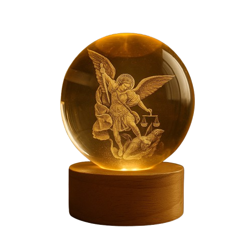 💡 Luminária São Miguel – Fé que Ilumina® – 12 cm. luz suave e presença espiritual acolhedora.