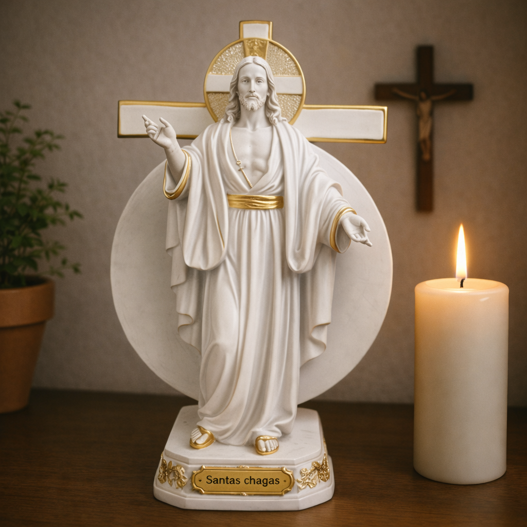✨ Imagem Jesus das Santas Chagas Dourado 20cm – Decoração com Fé® ✨