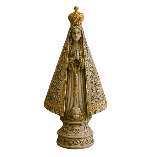 Uma peça elegante e cheia de significado. Essa imagem de Nossa Senhora Aparecida tem acabamento marmorizado. que mistura tons suaves e efeito de pedra. trazendo modernidade sem perder a reverência. Ideal para pequenos oratórios. mesas ou como presente devocional.