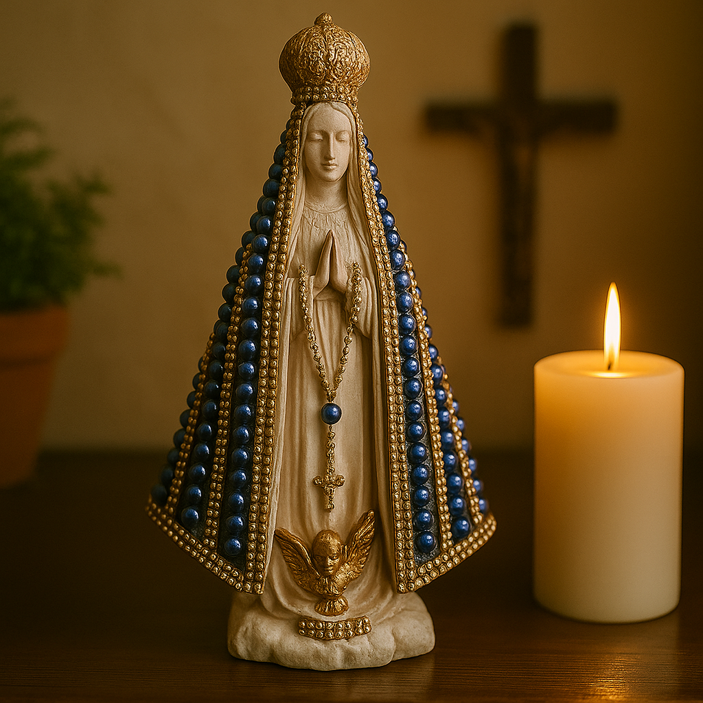 Imagem Nossa Senhora Aparecida Manto Perolado 25cm - Decoração com Fé®