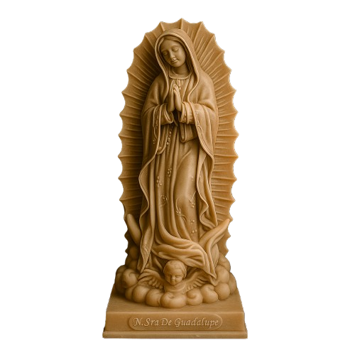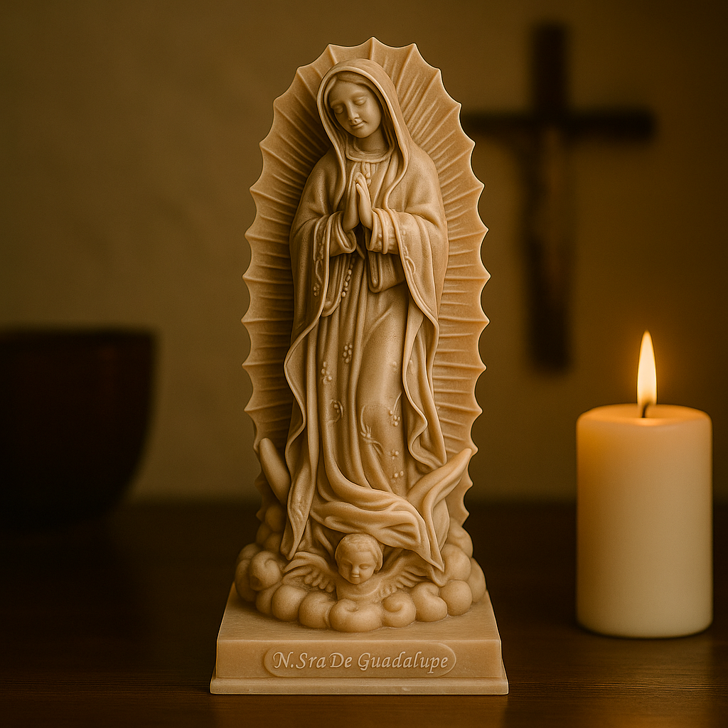 Esta imagem representa Nossa Senhora de Guadalupe. símbolo de proteção. fé e amor maternal. Feita em resina maciça. com acabamento delicado. transmite serenidade e devoção. sendo perfeita para momentos de oração e decoração de ambientes religiosos.