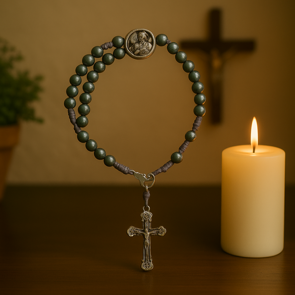 • 📿 Terço de Pulso com Medalha de São Miguel – Para manter a devoção sempre ao alcance das mãos