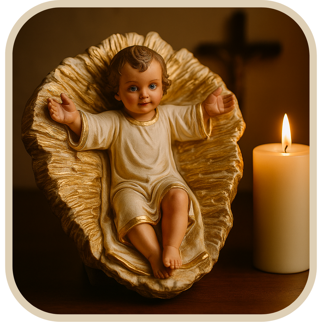 Belo Menino Jesus na Manjedoura. representando a pureza. a humildade e o amor do nascimento do Salvador. Produzido em resina de alta qualidade. possui pintura feita à mão. com expressão serena e acabamento delicado que transmite paz e fé ao ambiente.